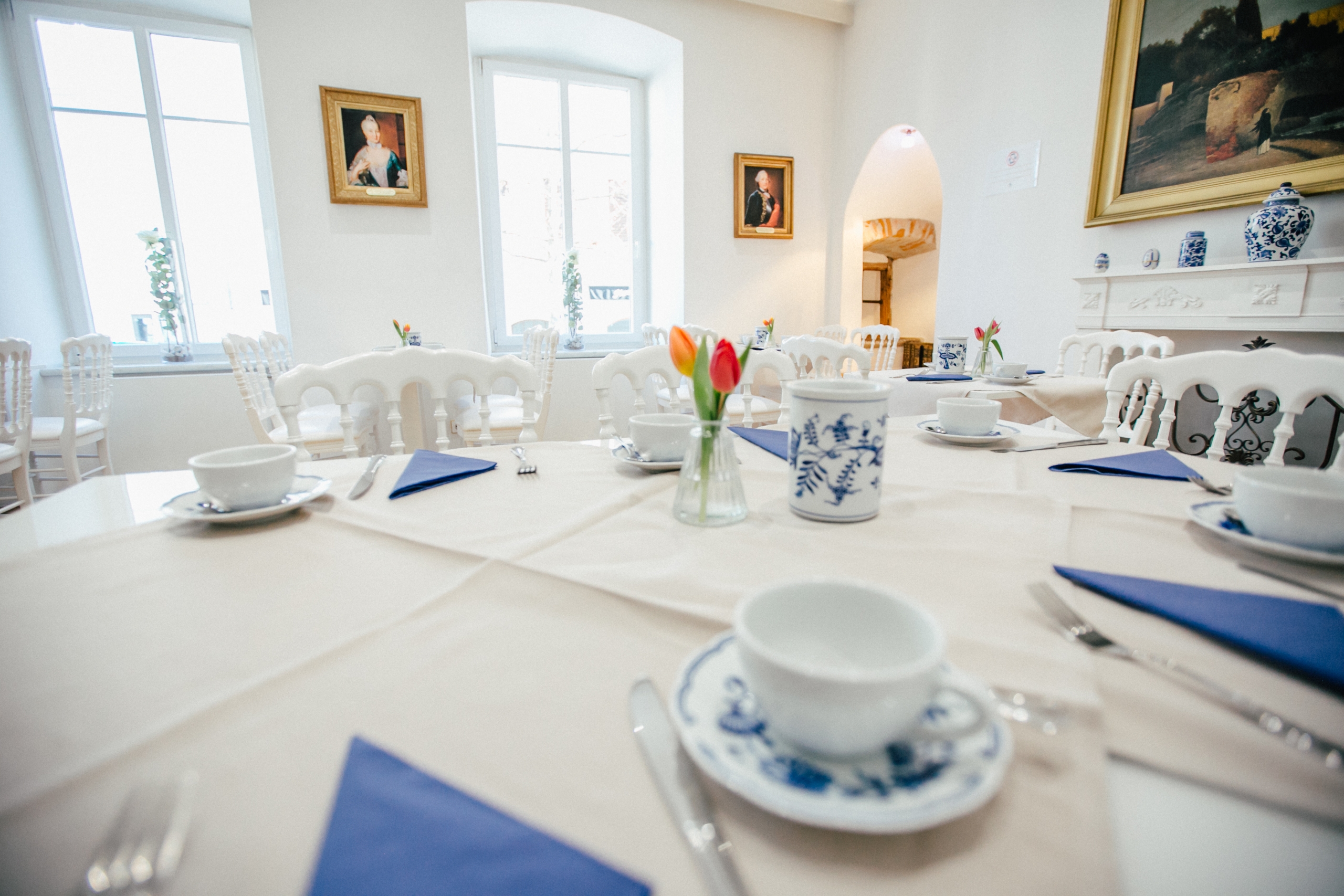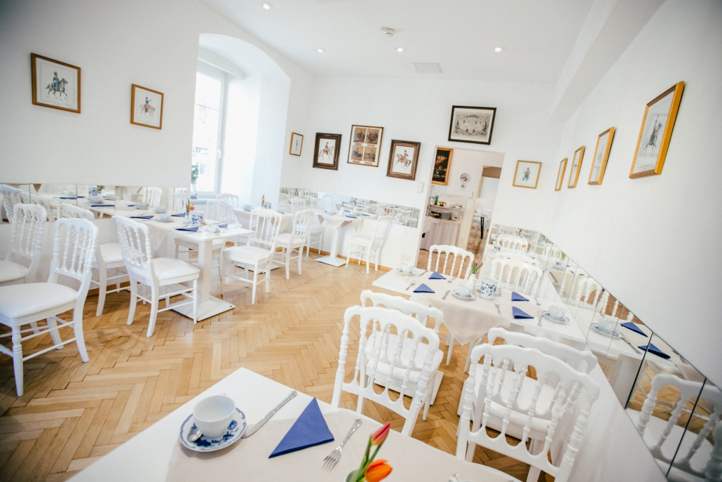 Genießen Sie Ihr Frühstück in unseren klimatisierten, lichtdurchfluteten Frühstückszimmern mit stilvollen Stühlen aus der Werkstatt, die auch für die Wiener Hofburg fertigt. Die Räume verbinden Renaissance-Flair mit moderner Leichtigkeit – ein Ort mit feinster Kulinarik zum Wohlfühlen.