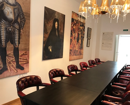 Empfangen Sie Ihre Geschäftspartner, Kunden und Mitarbeiter in unserem historischen Boyneburg Salon, welcher Platz für bis zu 12 Personen bietet.