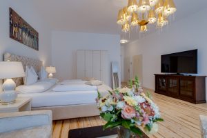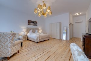 Unsere beiden „Junior-Suiten“ sind eine Kombination aus Eleganz und Geschichte. Sie wurden komplett neu renoviert mit wunderschönen, hellen, großen weißen Badezimmern. Das Mobiliar wurde von unserem Haustischler in creme gehalten, moderne antiallergische Boxspringbetten sorgen für besten Schlafkomfort. Ausgestattet sind die Zimmer mit Parkettboden, Flatscreen, Wlan und der Möglichkeit zur Verdunkelung. Da wir direkt im Herzen der Innenstadt liegen, haben auch diese Zimmer Brandschutztüren und spezielle Schallschutz Fenster.